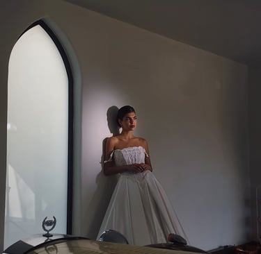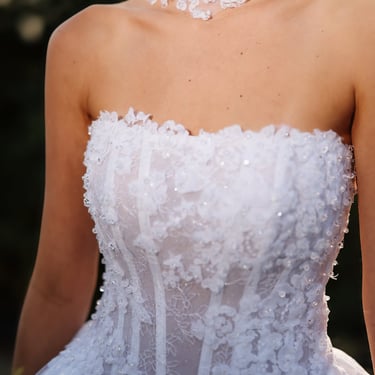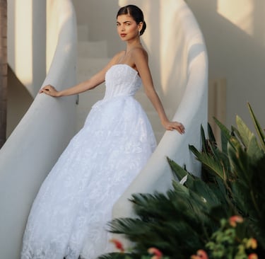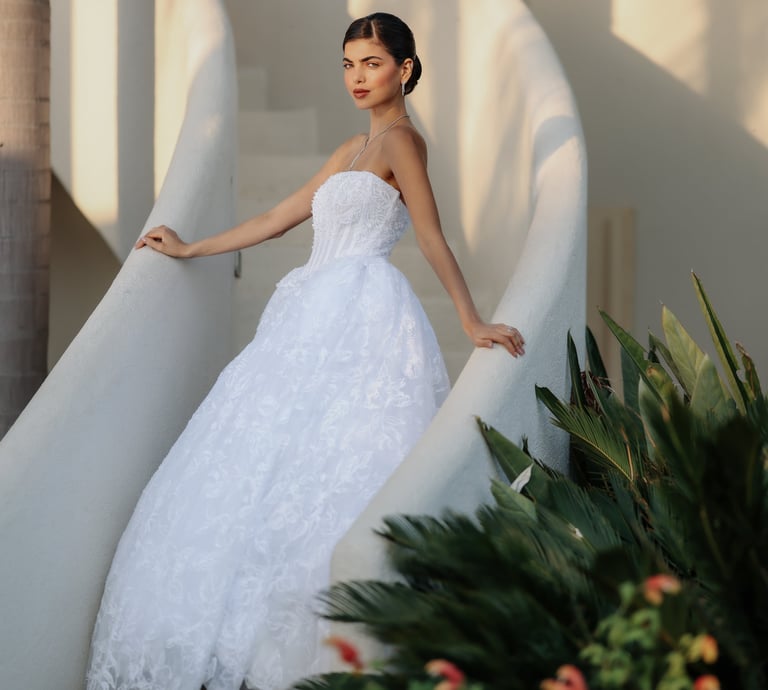 A glimpse into our elegant wedding dress collection.